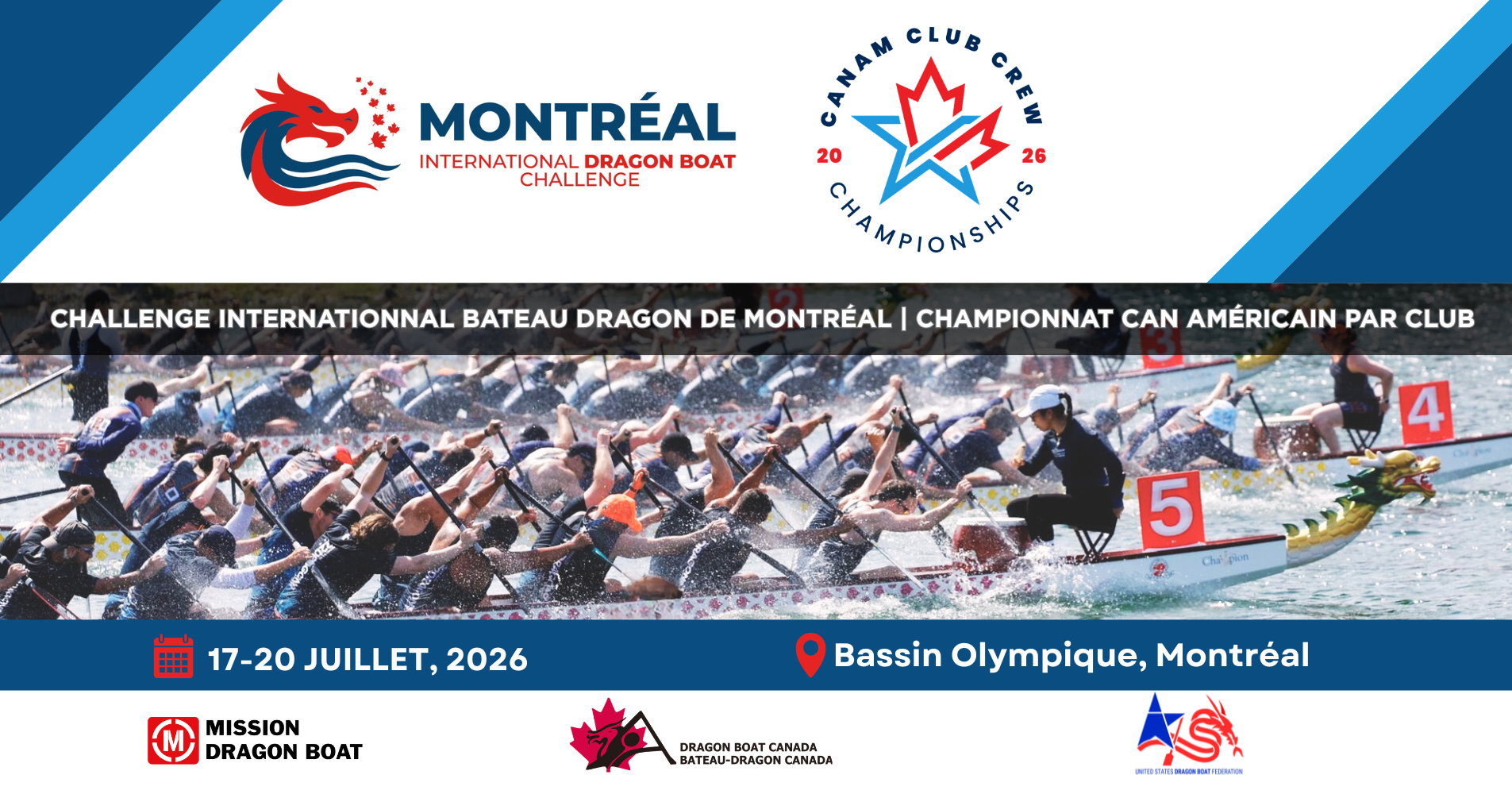 Bateau Dragon Canada est fier d’accueillir les Championnats CanAm au Bassin olympique du Parc Jean-Drapeau. Nous sommes ravis de collaborer avec Mission Bateau Dragon et l’USDBF afin d’offrir les courses les plus compétitives et les plus excitantes du continent en 2026!